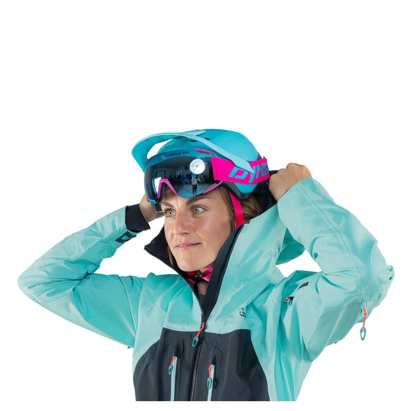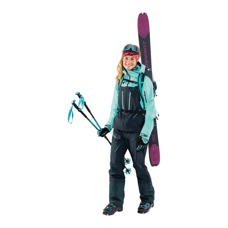 La veste se combine parfaitement avec le pantalon de randonnĂ©e DYNAFIT Free GORE-TEX et vous pouvez fixer la jupe pare-neige au pantalon pour empĂȘcher la pĂ©nĂ©tration de la neige dans vos vĂȘtements.