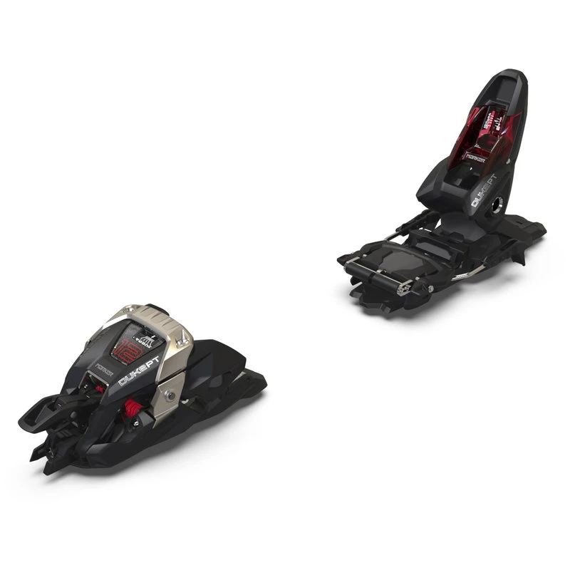 La Duke PT 12 (DIN 4-12) est non seulement complĂštement nouvelle, mais combine Ă©galement les performances d’une Squire avec la facilitĂ© d’utilisation en montĂ©e d’une fixation Ă inserts. Une caractĂ©ristique remarquable est son innovante butĂ©e avant Ride & Hike. En mode marche, la partie supĂ©rieure est simplement dĂ©bloquĂ©e et tournĂ©e vers l’avant, en dĂ©voilant la fixation Ă inserts. Pour rĂ©duire le poids des oscillations, la partie supĂ©rieure de la butĂ©e avant peut ĂȘtre enlevĂ©e et rangĂ©e dans un sac Ă dos. LâunitĂ© multifonction Lock & Walk bloque automatiquement le stop-ski et sert de cale de montĂ©e avec inclinaison Ă 10°. En descente, la section frontale de la butĂ©e avant est Ă nouveau rĂ©insĂ©rĂ©e sur la plaque et la technologie Auto Quad Lock assure son blocage en quatre points. Ă prĂ©sent, la butĂ©e avant fonctionne comme une butĂ©e avant de ski de randonnĂ©e normale, avec tous les avantages associĂ©s ! La talonniĂšre appartient Ă la toute derniĂšre gĂ©nĂ©ration de talonniĂšres lĂ©gĂšres Hollow Linkage. La hauteur rĂ©duite de seulement 24 mm garantit une transmission directe de la puissance et un changement de courbe plus rapide. GrĂące Ă Sole.ID, toutes les Duke PT sont compatibles avec les chaussures de ski alpin, de ski de randonnĂ©e et GripWalk.