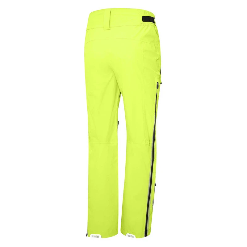 - Deep side opening from the bottom leg with double custom camlock and waterproof zipper, the upper puller on the thigh creates a ventilation opening while the bottom one opens till the thigh to allow wearing the pants with your boots on